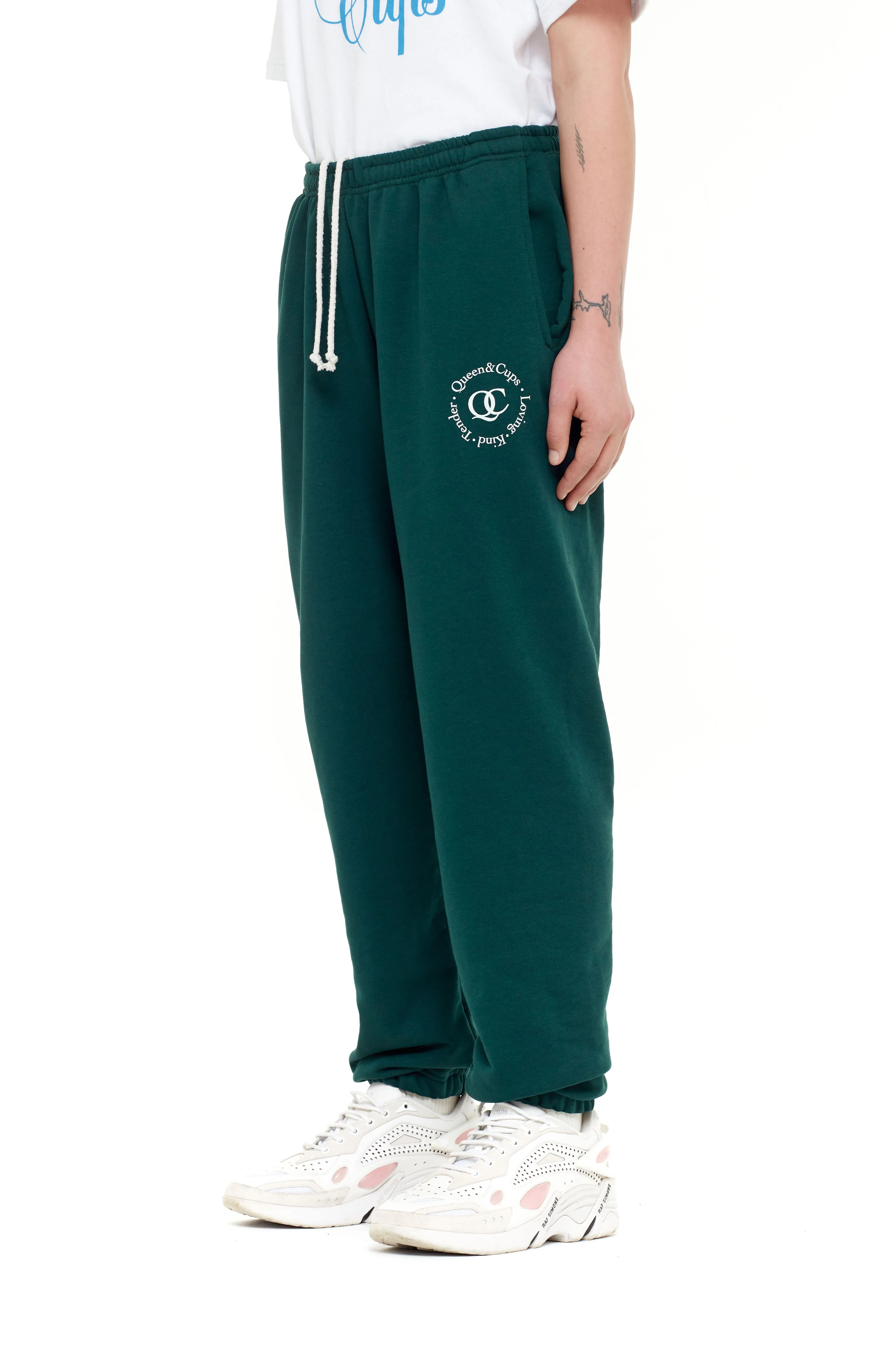 Спортивные брюки из хлопка с добавлением искусственных волокон. Модель свободного кроя, с боковыми карманами, небольшим принтом, с эластичным поясом и эластичными манжетами. Принт в виде логотипа бренда, дополненного слоганом «Loving. Kind. Tender».