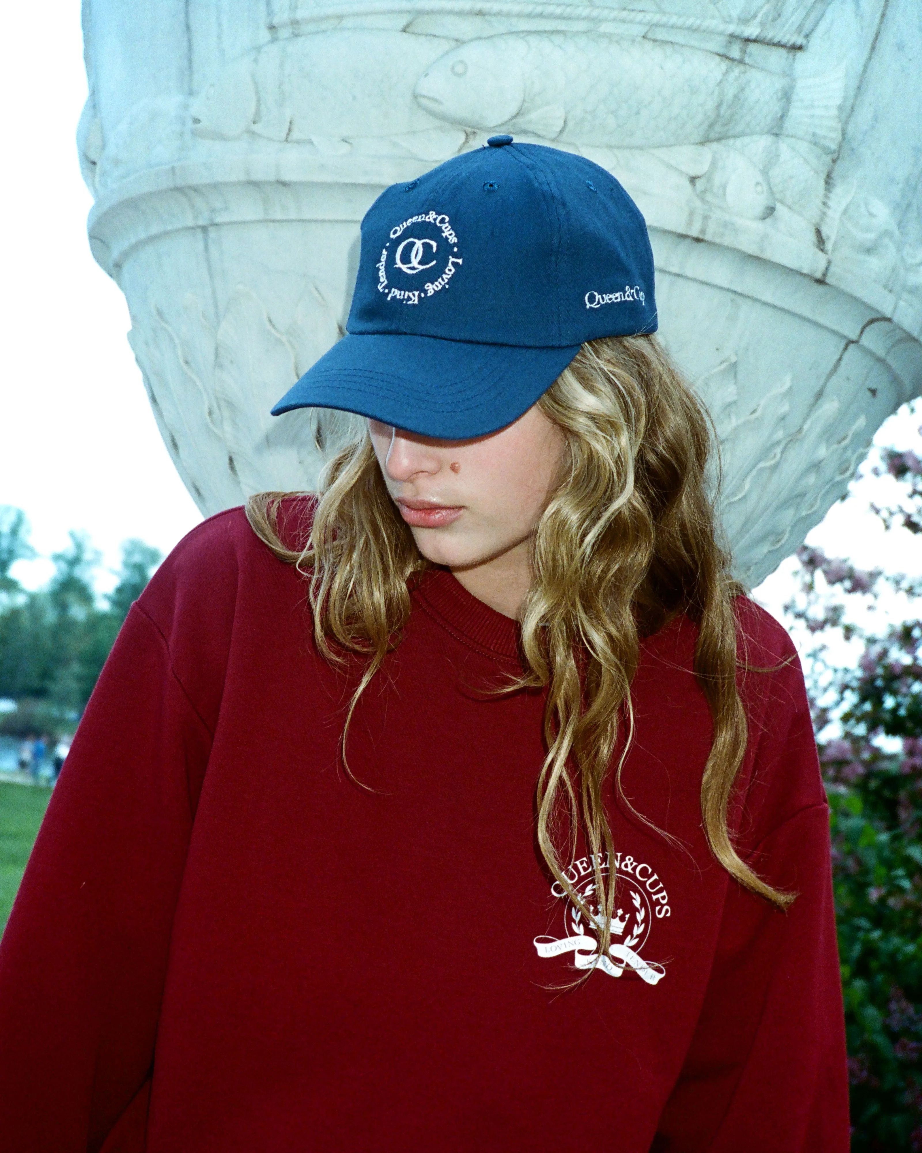Кепка из хлопка с крупной вышивкой спереди и небольшой вышивкой сбоку. Прошитый козырек и ремешок для регулировки размера. Вышивка в виде логотипа бренда, дополненного слоганом «Loving. Kind. Tender».