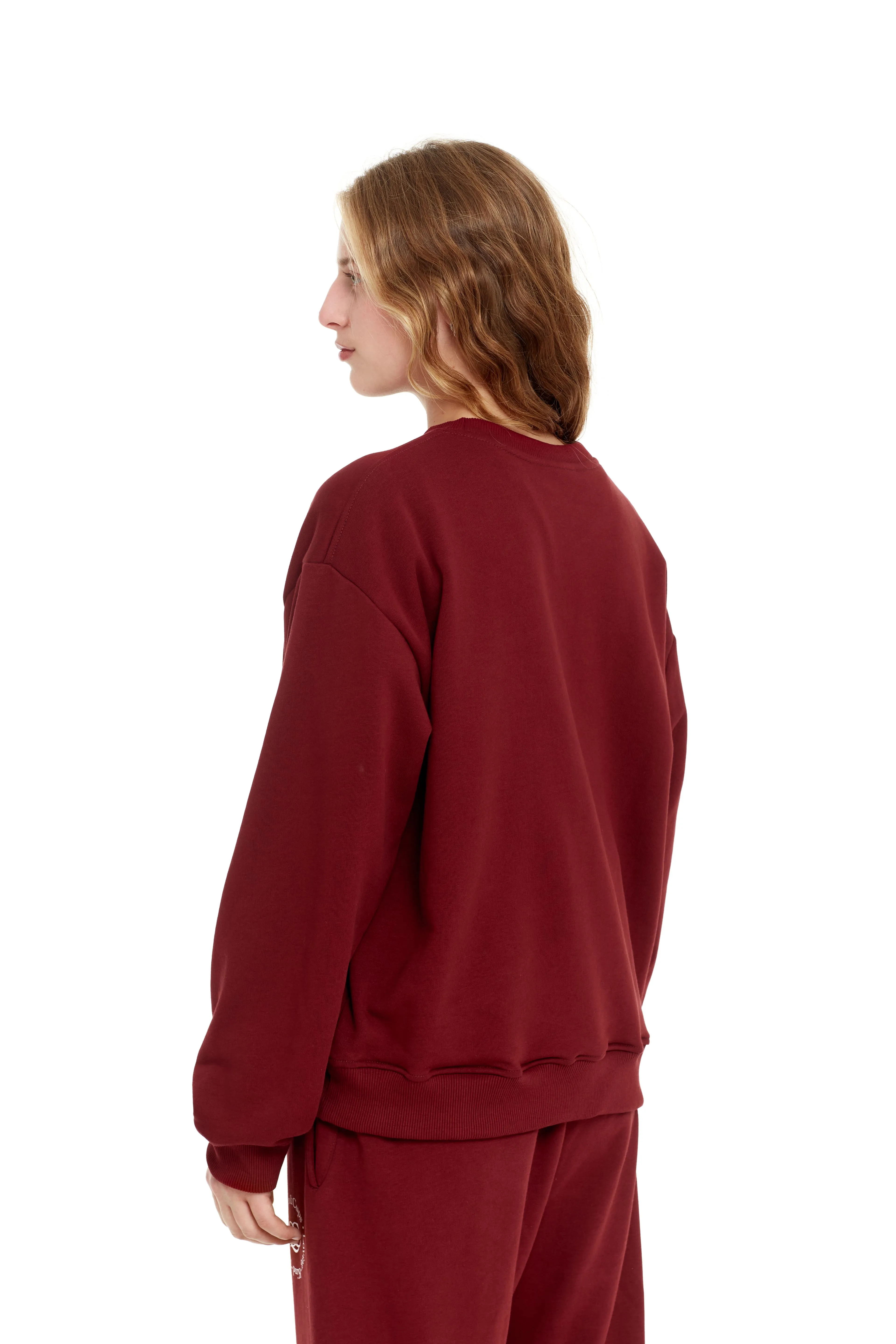 Свитшот из хлопка с добавлением искусственных волокон с крупным принтом в виде логотипа бренда на груди. Модель свободного кроя с круглым горловым вырезом, эластичными манжетами и длинными рукавами.
